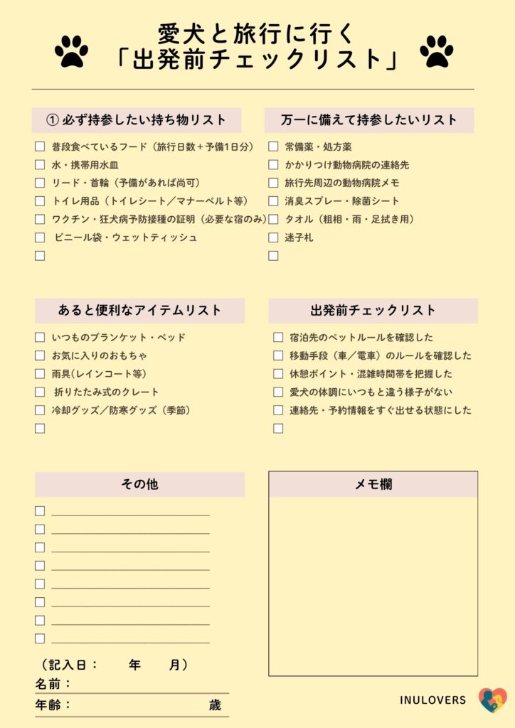 犬との旅行は、出発前の確認だけで防げるトラブルがたくさんあります。